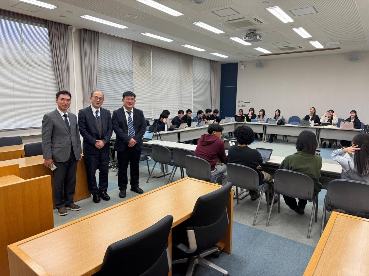 访问期间,双方就法学课程体系创新展开对话。日方介绍了《数字法学模块化课程》的开发与实践,聚焦人工智能治理、数据安全等前沿内容,展现模块化教学在数字法治人才培养中的优势。吴东镐院长则分享了《民族区域法治+涉外法治》融合课程体系,结合地域特色与跨境法律实务,形成具有本土特色与国际视野的教学模式,获得日方高度评价。