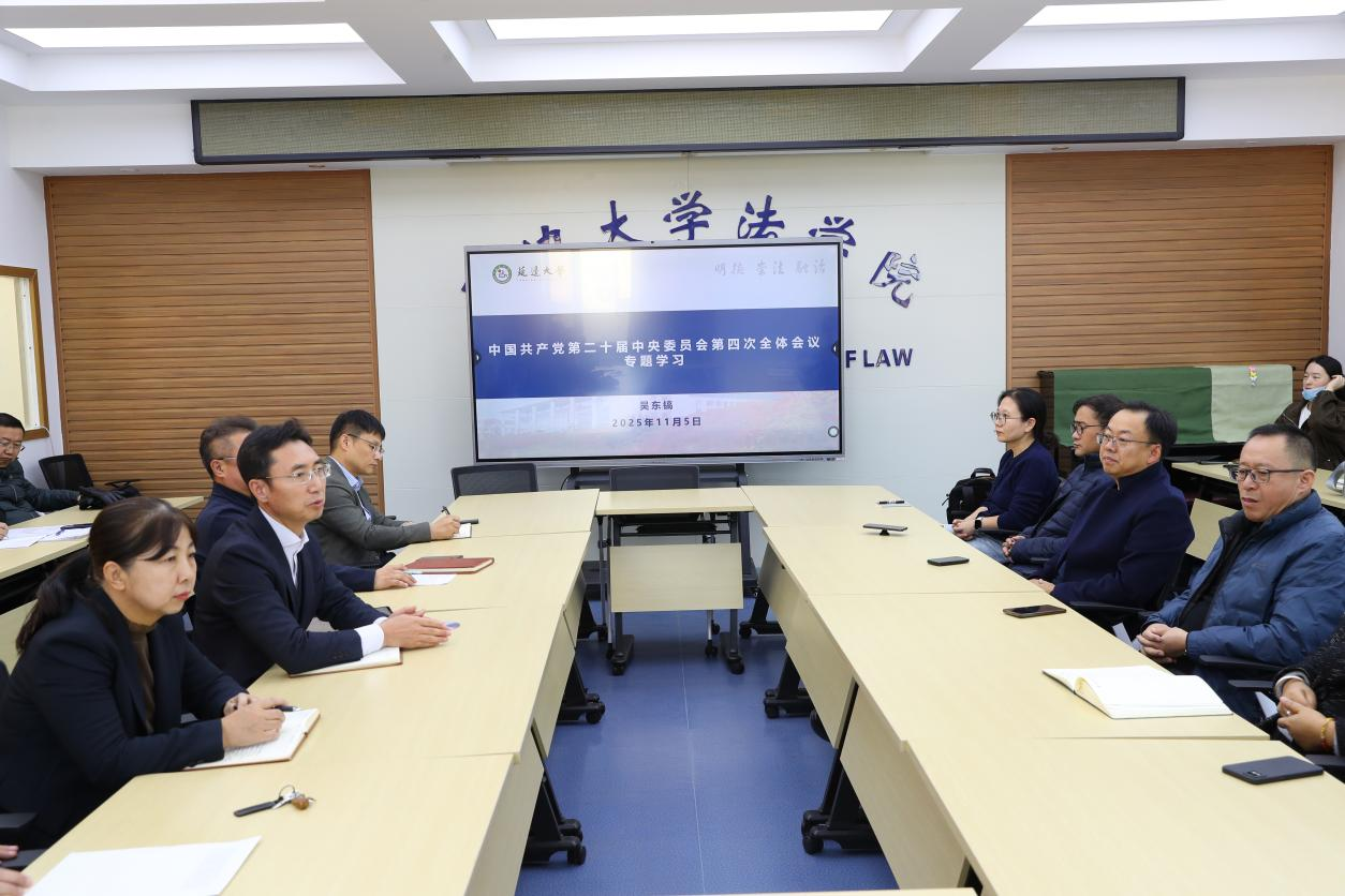 为深刻领会、全面把握党中央最新精神要义,并将其切实转化为推动学院高质量发展的强大动力,法学院于2025年11月5日召开专题学习中国共产党第二十届中央委员会第四次全体会议重要精神。本次专题会议由吴东镐院长主持。