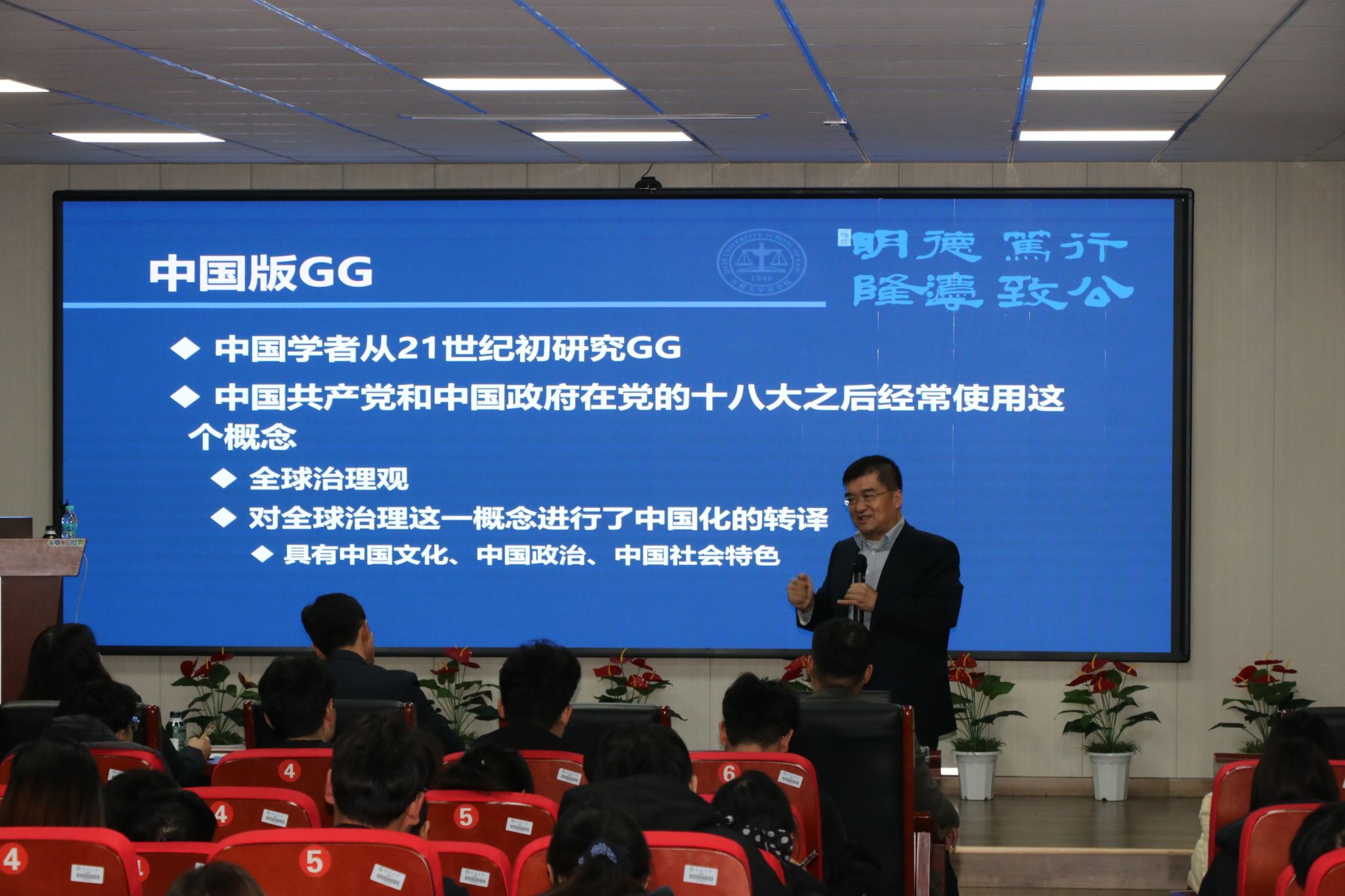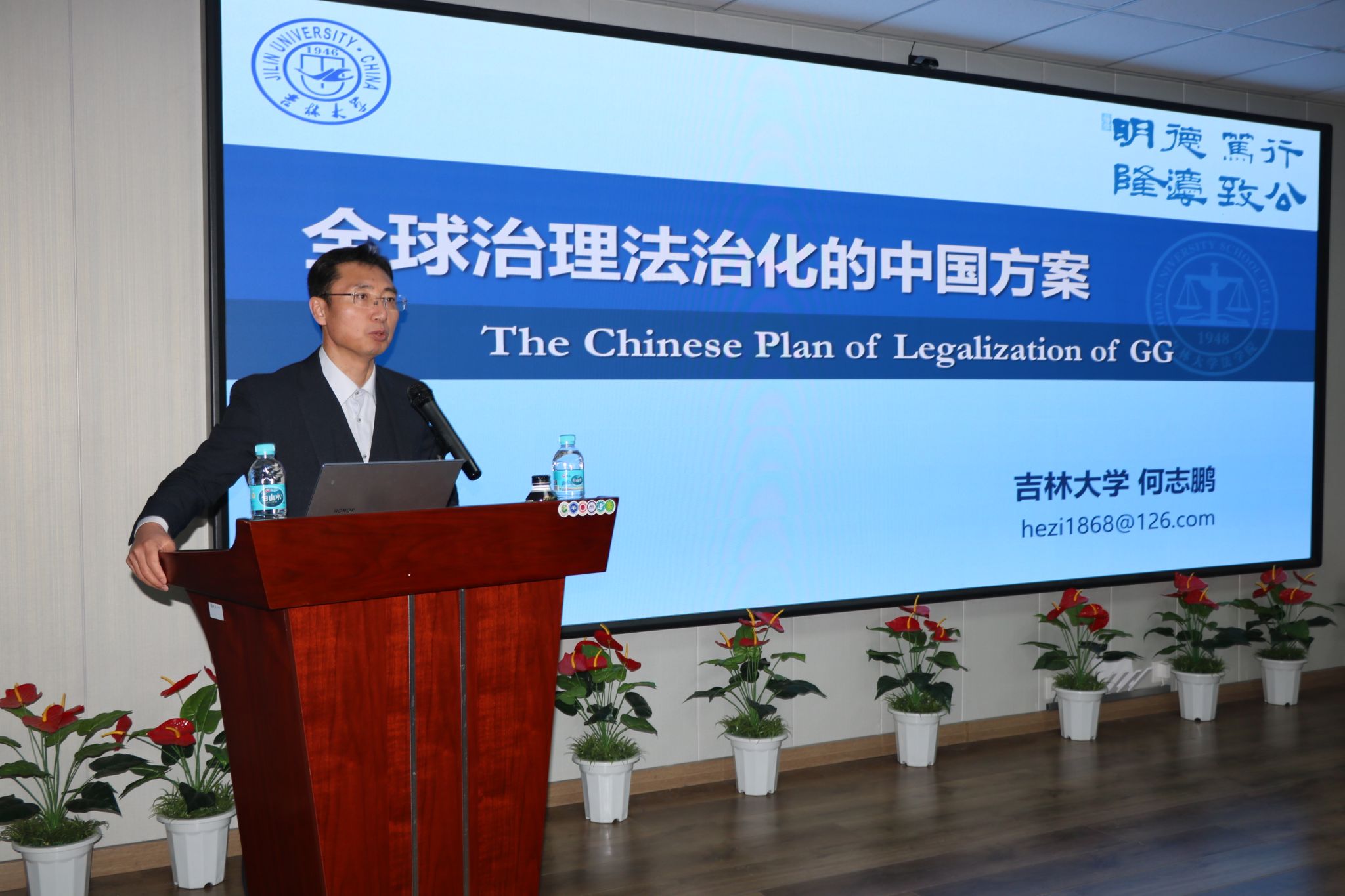 2025年11月26日下午,延边大学法学院在成教楼一楼报告厅举办东北亚法学讲堂第十九讲,主题为“全球治理法治化的中国方案”。由吉林大学法学院院长何志鹏主讲,吴东镐院长主持,学院骨干教师与研究生参加。