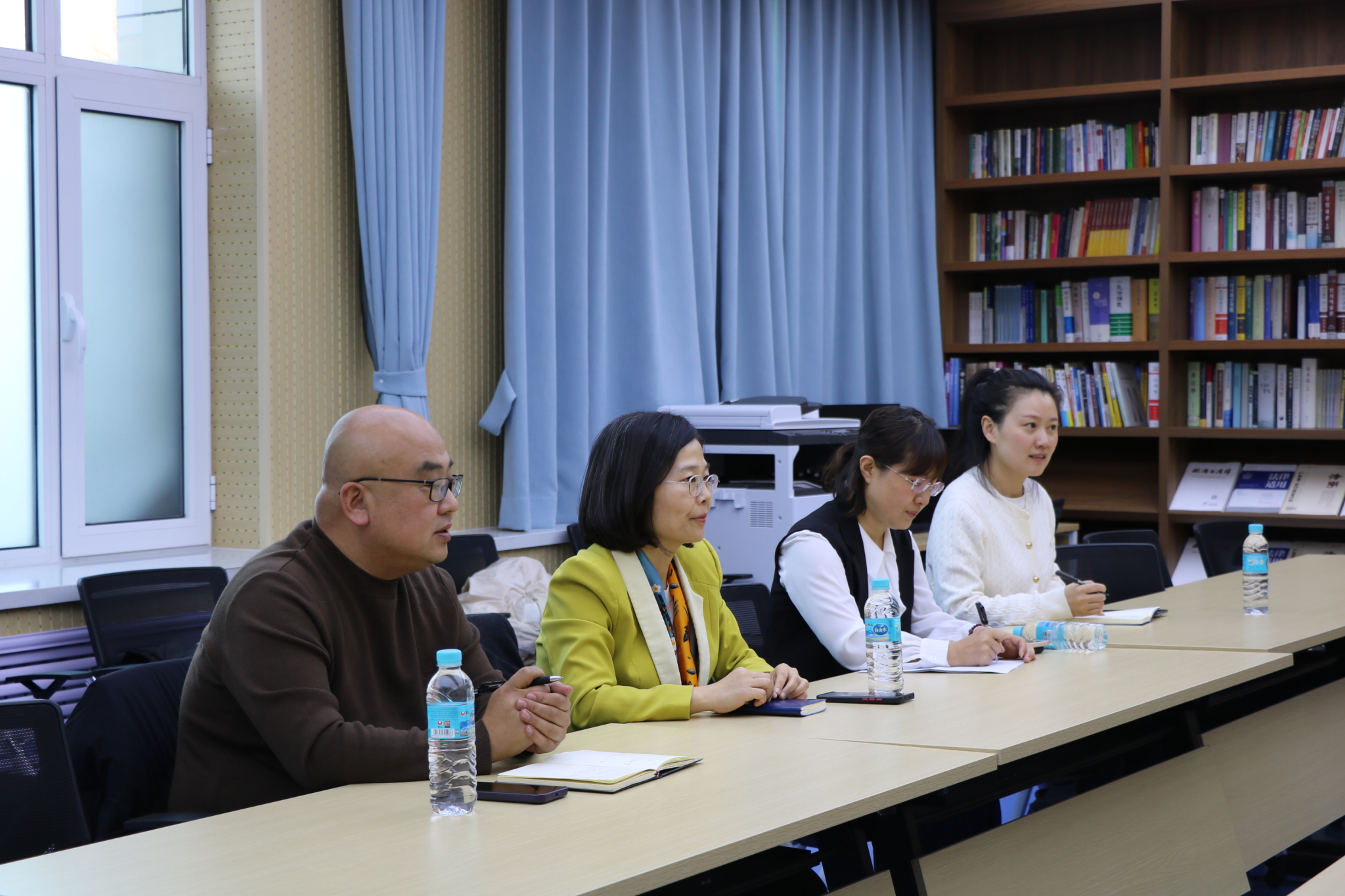 朴香子院长对延边大学法学院长期以来给予法院工作的支持表示感谢。她表示,珲春作为中、俄、朝三国交界的边境城市,司法实践中面临着跨境纠纷解决、涉外法律适用等诸多新课题,亟需高校学术资源的赋能。朴香子院长提出,希望以此次座谈为契机,深化三项合作:一是建立“双师共育”机制,邀请法院资深法官担任法学院实务导师,参与课程设计与案例教学;二是共建“司法实践研究基地”,围绕跨境纠纷化解、数字法治等前沿议题开展联合攻关;三是拓宽学生实践渠道,优化实习实训安排,为法学专业学生提供沉浸式司法实践体验,助力培养“懂理论、熟实务、通跨境”的复合型法治人才。