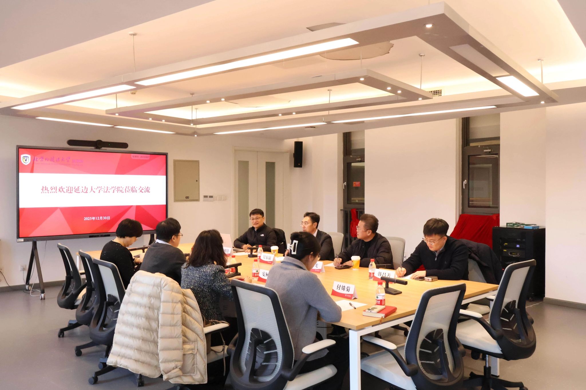 为加强校际合作、借鉴先进办学经验,推动学院高质量发展,2025年12月30日,延边大学法学院院长吴东镐率调研组赴北京外国语大学法学院开展调研交流。延边大学法学院党委副书记赵光、教学副院长景明浩、教师党支部书记韩昌善参加调研。北京外国语大学法学院党委书记郭向华、院长丁相顺及教师代表共同出席座谈。